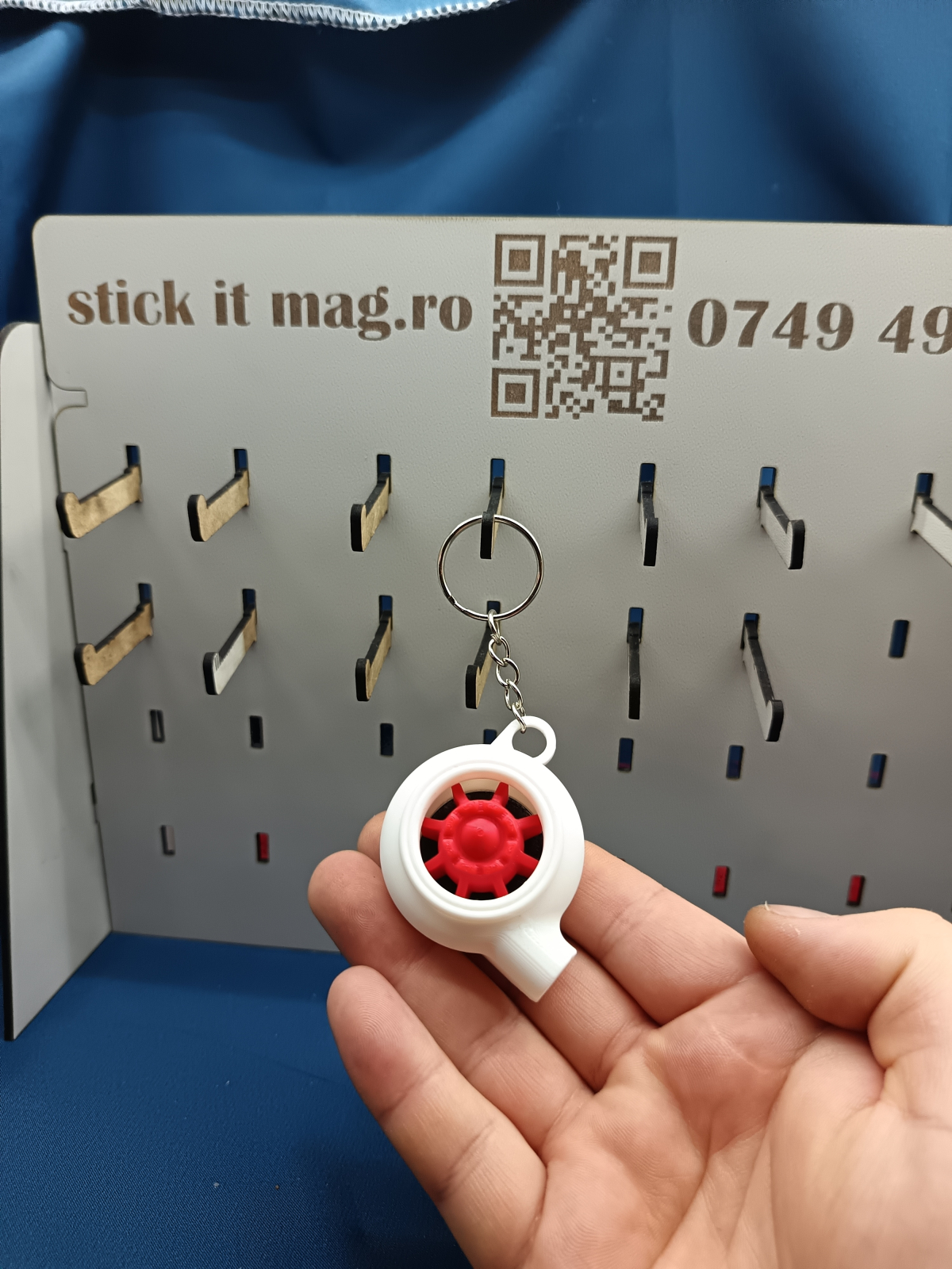 Dacă ești pasionat de mașini, acest breloc auto 3D în formă de turbină este alegerea perfectă. Designul alb cu axă roșie oferă un aspect sportiv, iar elementul rotativ îl face unic și captivant.