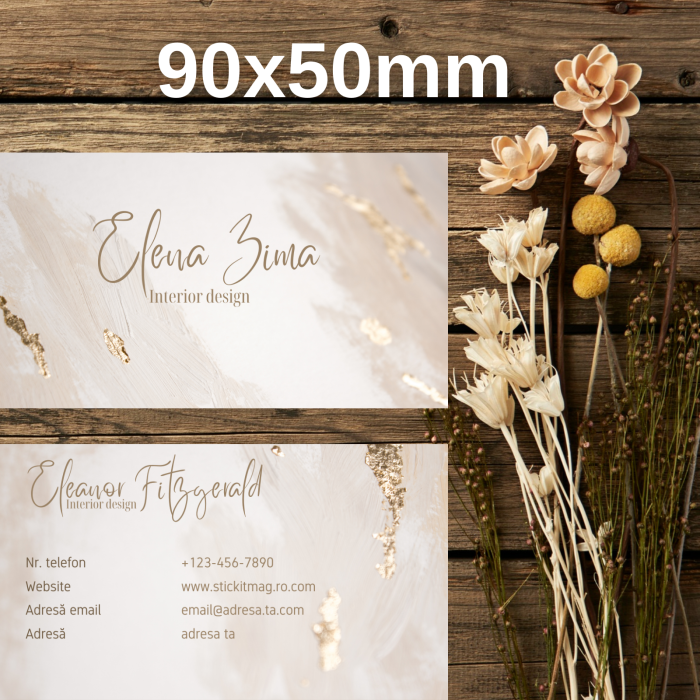 Alege un design rafinat și sofisticat cu Cărțile de Vizită Model 14 Alb Gold – Design Interior, create special pentru profesioniștii care activează în domeniul amenajărilor interioare și al proiectelor premium.