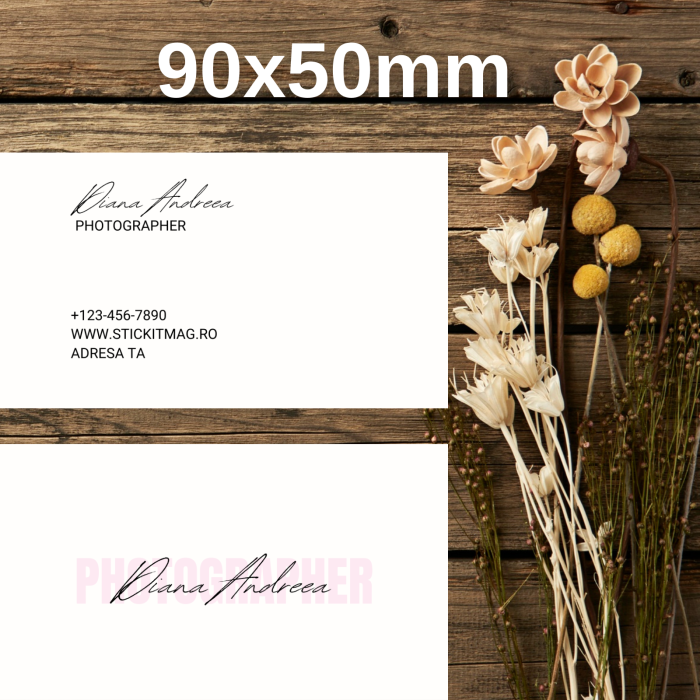 Designul este adaptat domeniului foto și pune accent pe imagine, creativitate și profesionalism. O carte de vizită bine realizată transmite seriozitate și consolidează brandul personal al unui fotograf.