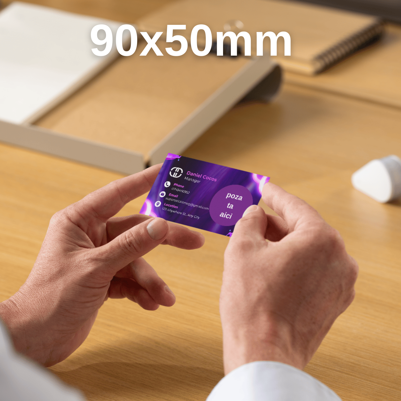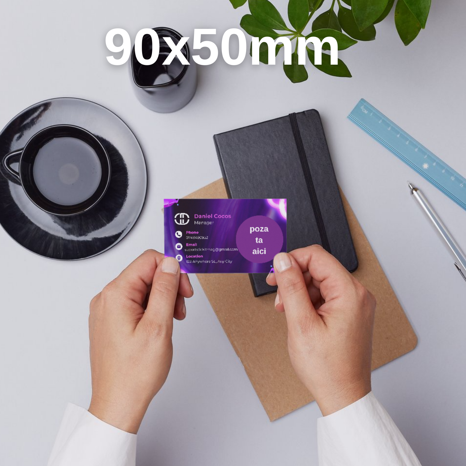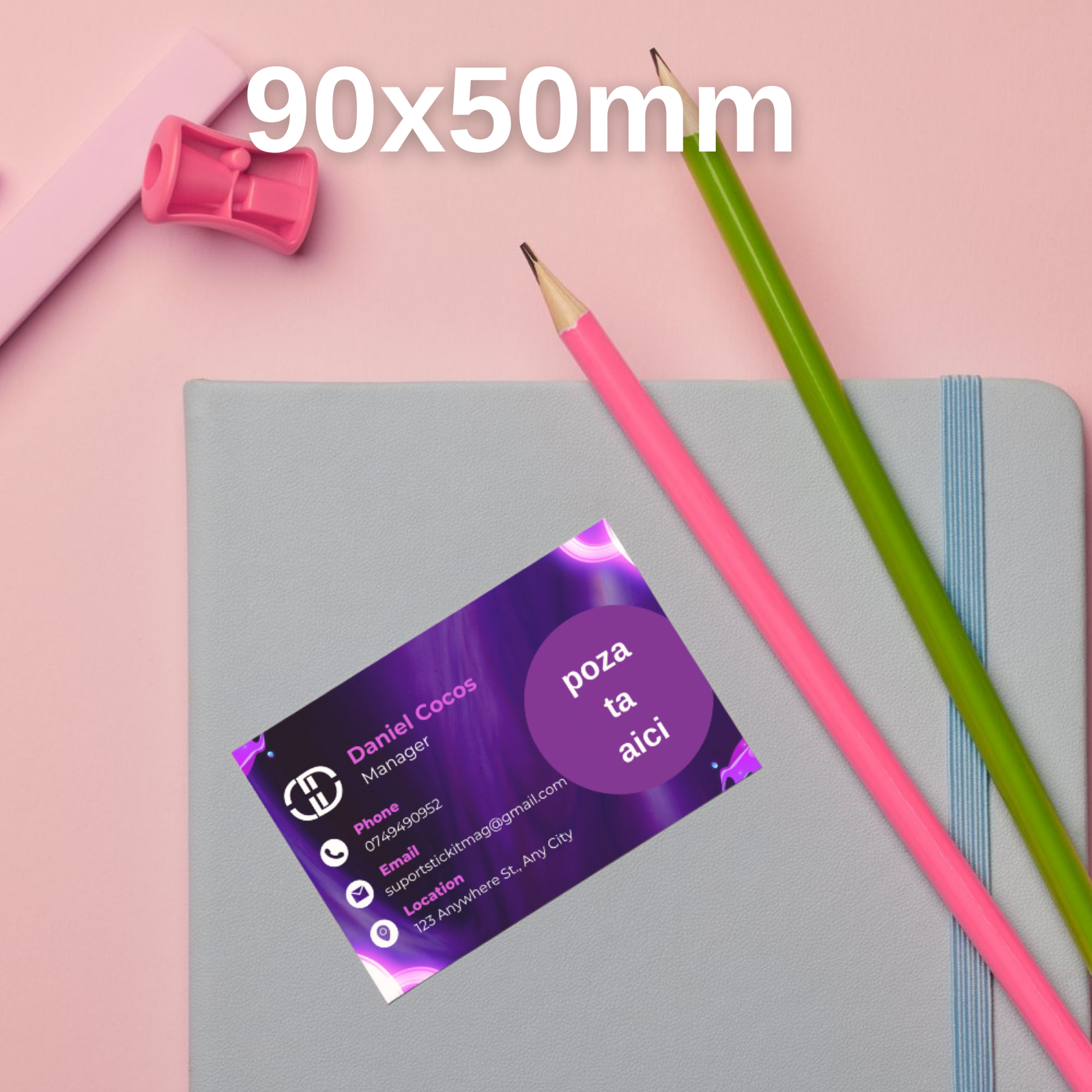 Alege un stil distinct și memorabil cu Cărțile de Vizită Model 2 Purple Alb și Negru, un design modern care combină eleganța negrului, claritatea albului și energia vibrantă a culorii purple.