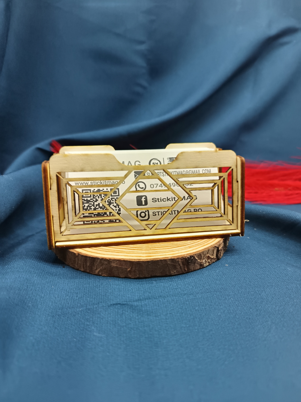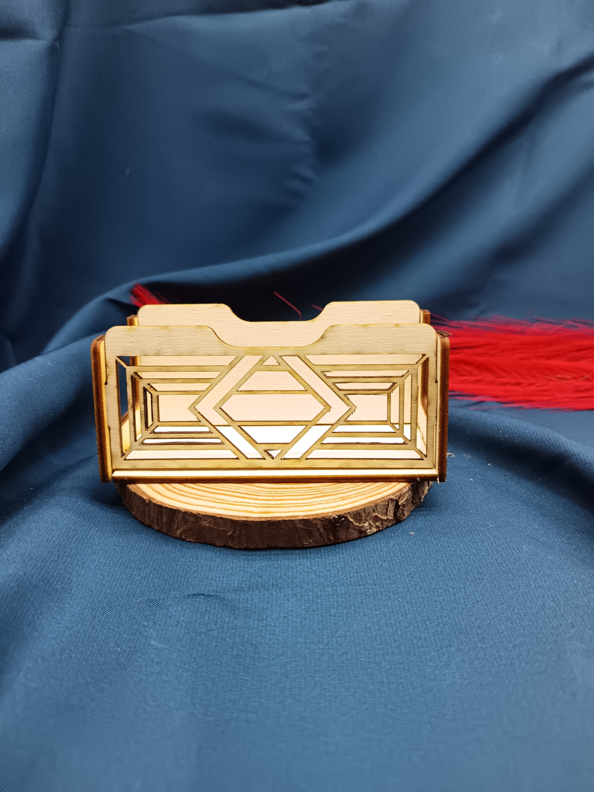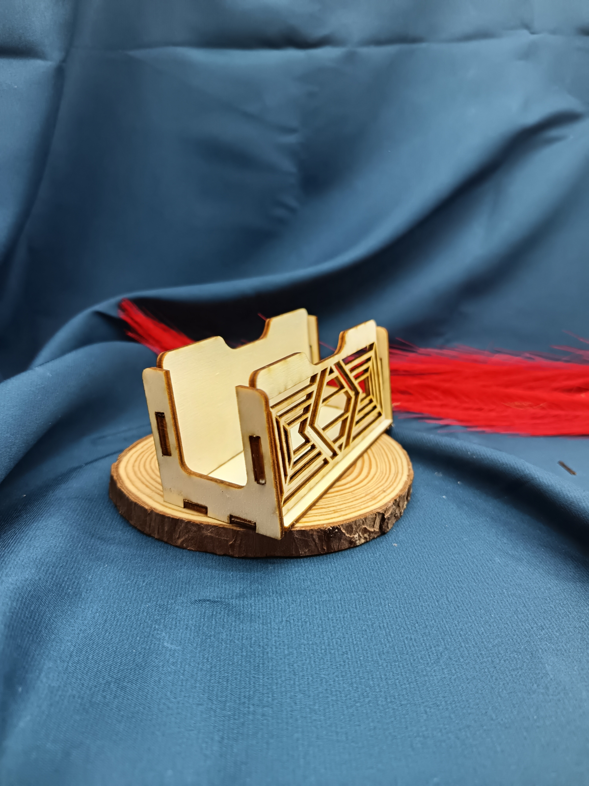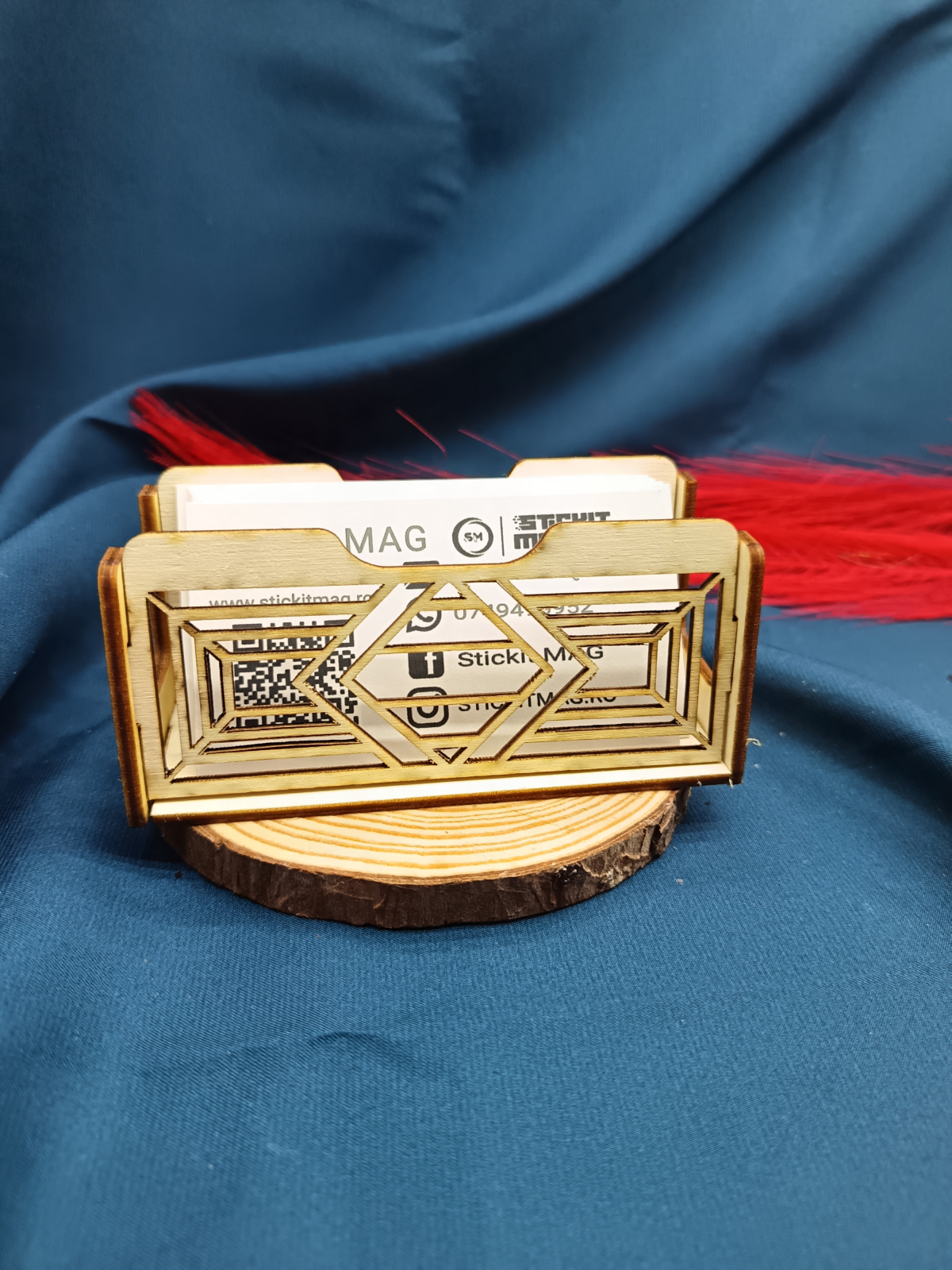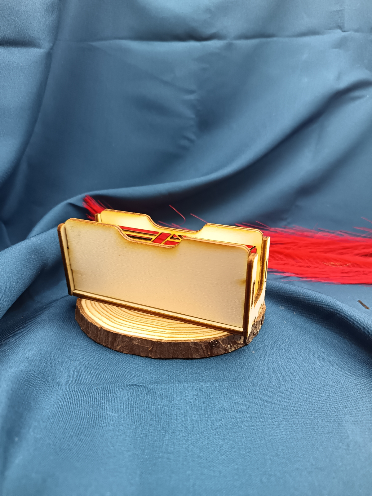 Suport minimalist pentru cărți de vizită din lemn de plop, cu design simplu tip linie (o dungă), realizat prin tăiere laser. Elegant și discret, ideal pentru orice birou.