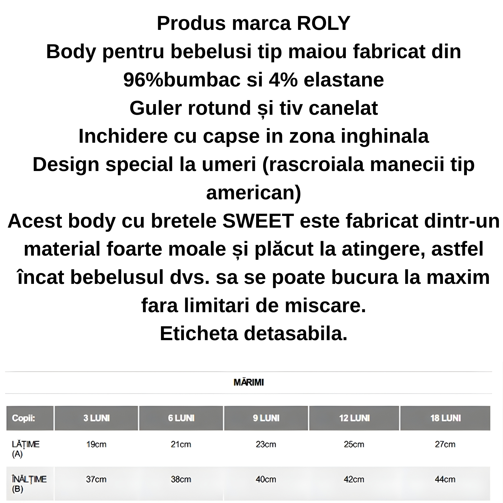 Modelul SWEET de la ROLY este fabricat dintr-un material premium, foarte moale și plăcut la atingere, perfect pentru pielea sensibilă a bebelușilor.