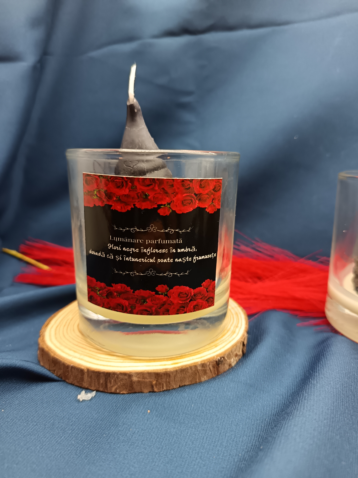 Lumânarea Flacăra Tăcerii face parte din colecția Flori Negre, care arată că frumusețea poate răsări chiar și din întuneric. Exteriorul negru ascunde un interior roșu aprins, care se dezvăluie spectaculos atunci când lumânarea este aprinsă, creând un efect vizual captivant.