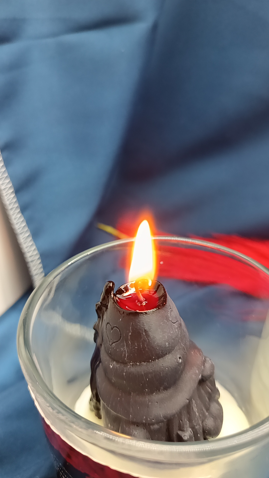 Aprinde lumânarea pentru a crea atmosferă misterioasă și vizual spectaculoasă. Interiorul roșu curgător oferă un efect captivant, iar exteriorul negru accentuează contrastul și eleganța.