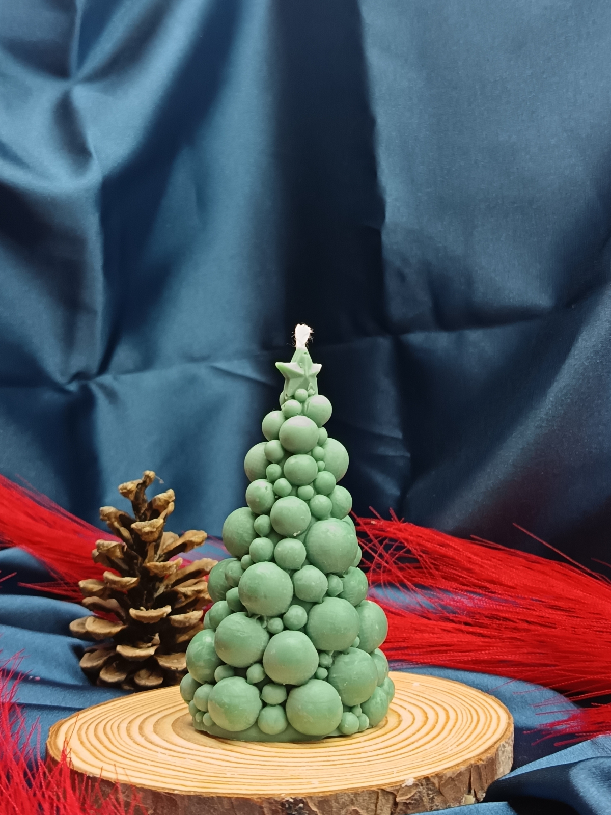 Adaugă un strop de magie sărbătorilor cu o lumânare parfumată în formă de brăduț de bucle cu stea, realizată manual din ceară naturală de soia. Cu o greutate de 70g și o dimensiune de 10x5cm, este perfectă pentru decoruri festive, cadouri de Crăciun sau pentru a crea o atmosferă caldă și elegantă în orice încăpere.